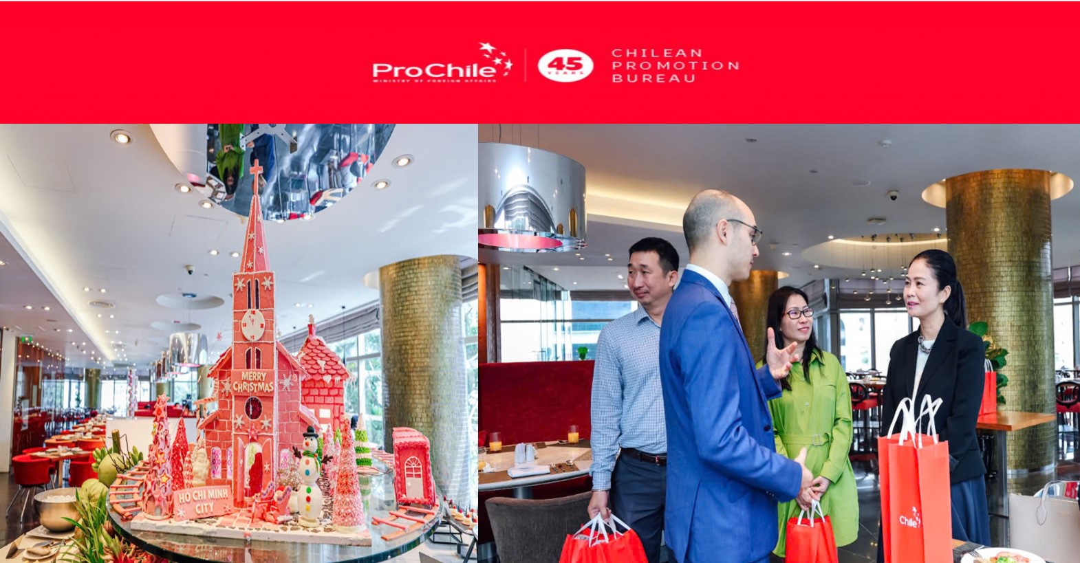 Vào ngày 18/12/2024, Hiệp Hội Thương Mại Chile tại Việt Nam (ProChile Vietnam) đã tổ chức bữa tiệc ấm cúng cùng các đối tác của Chile tại Khách Sạn Pullman Saigon Centre nhằm trao đổi và thắc chặt hơn giao thương giữa Chile và Việt Nam.