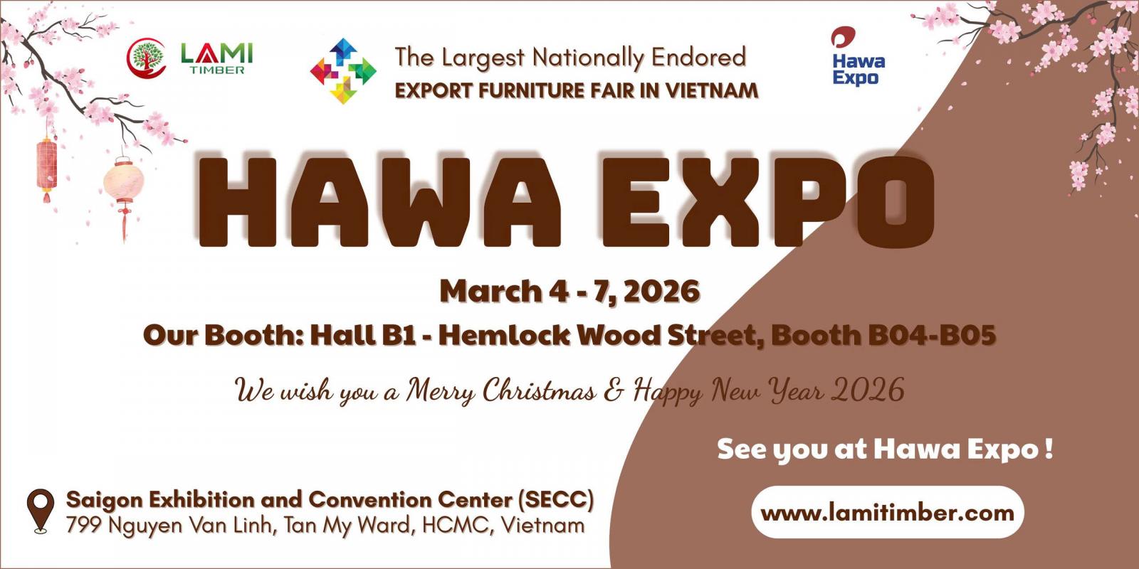 LAMI TIMBER is pleased to invite you to visit our booth at HAWA EXPO 2026 - the largest international furniture fair in Vietnam. HAWA EXPO 2026 is not just a trade fair but also a place to promote Vietnamese products closer to the world, affirming Vietnamese brands on the global market.